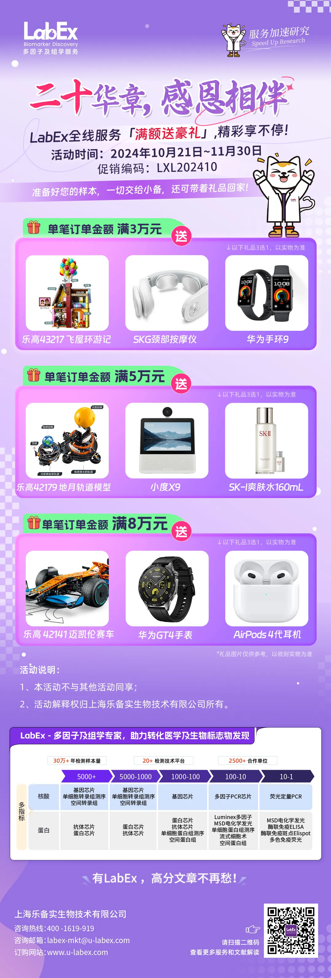 乐备实是国内专注于提供高质量蛋白检测以及组学分析服务的实验服务专家,自2018年成立以来,乐备实不断寻求突破,公司的服务技术平台已扩展到单细胞测序、空间多组学、流式检测、超敏电化学发光、Luminex多因子检测、蛋白芯片、抗体芯片、PCR Array、ELISA、Elispot、多色免疫组化等30多个,建立起了一套涵盖基因、蛋白、细胞以及组织水平实验的完整检测体系。