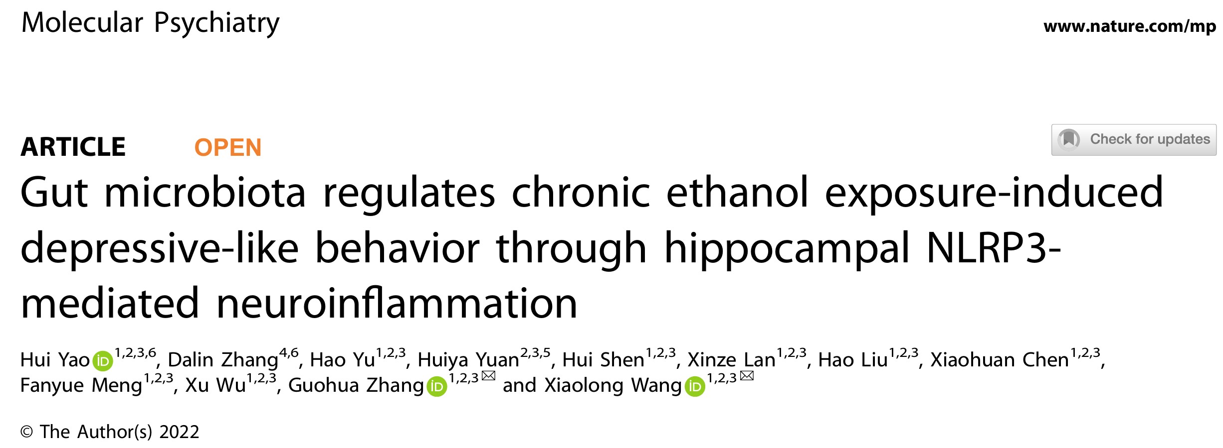 《Gut microbiota regulates chronic ethanol exposure-induced depressive-like behavior through hippocampal NLRP3-mediated neuroinflammation》