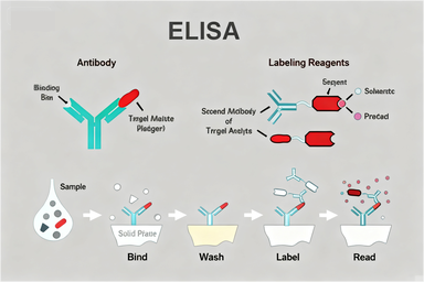 LabEx平台严格遵循标准化ELISA实验流程,涵盖包被、封闭、样本孵育、洗涤、酶标二抗反应、显色及终止等关键步骤,确保检测结果的可重复性与准确性。我们兼容多种样本类型,包括细胞上清液、血清、血浆及组织裂解液等,并提供灵活的检测选项,如直接法、间接法、夹心法及竞争法ELISA,以满足不同实验目标的需求。所有操作均在规范化的实验室环境中进行,配备高性能酶标仪,保障数据的精确定量。