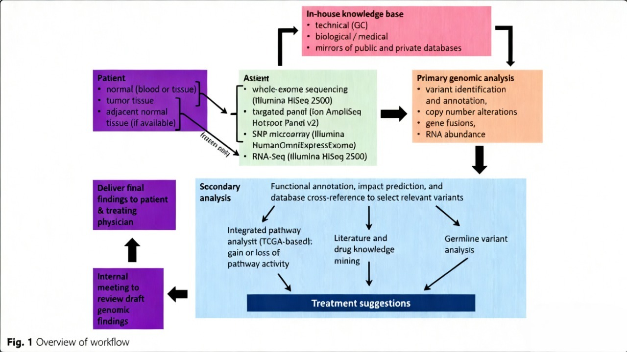 通过建立严格的质控标准和数据分析流程,确保结果的准确性和可重复性。分析过程包括初级分析(变异识别)、次级分析(功能注释)和临床解读三个主要环节,最终形成个体化的治疗建议。