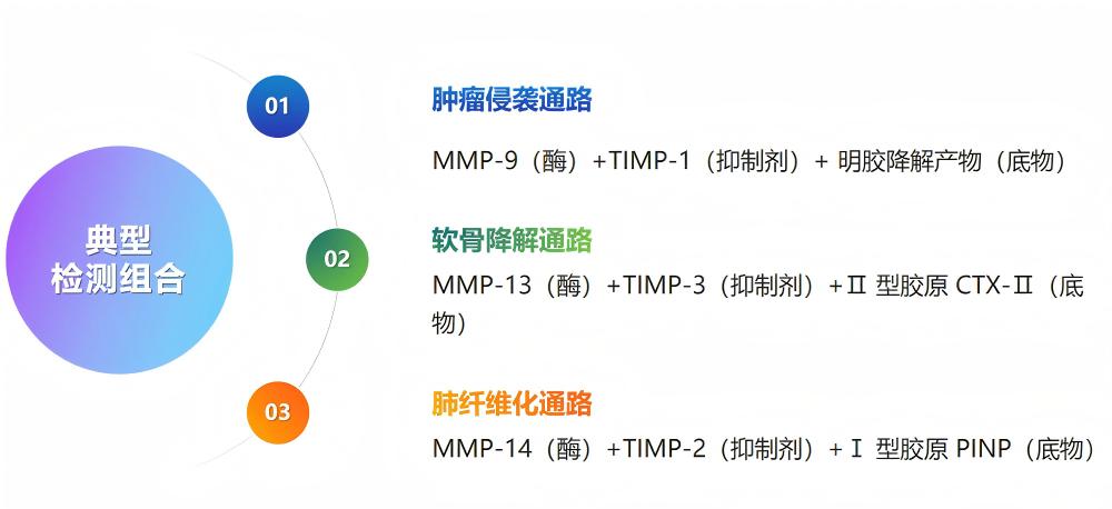 MMPs的活性受到其天然抑制剂——组织金属蛋白酶抑制剂(TIMPs)的精密调控。MMP/TIMP失衡往往预示着疾病的发生与进展。因此,同时检测MMPs、TIMPs及其下游底物,构建完整的“酶-抑制剂-底物”调控网络,对于深入理解疾病机制、评估药物干预效果具有重要意义。