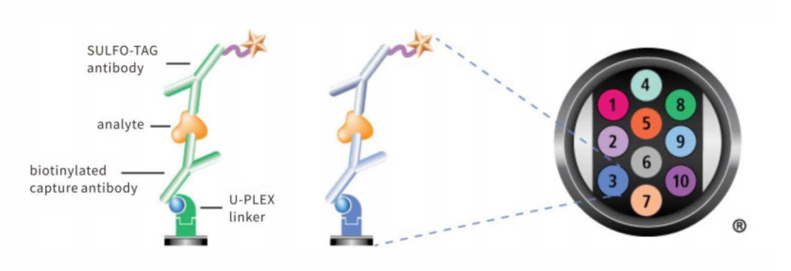 MSD 电化学发光技术:基于石墨电极板点阵与电化学发光原理,具备 fg/mL 级超高灵敏度与低背景信号特性。可精准量化关节滑液、肺泡灌洗液、脑脊液等微量样本中低丰度 IL-8,同时支持单孔最多 100 个指标的定制化检测,完美适配临床转化研究中微量样本分析、治疗过程动态监测及高精准度因子定量等核心需求。