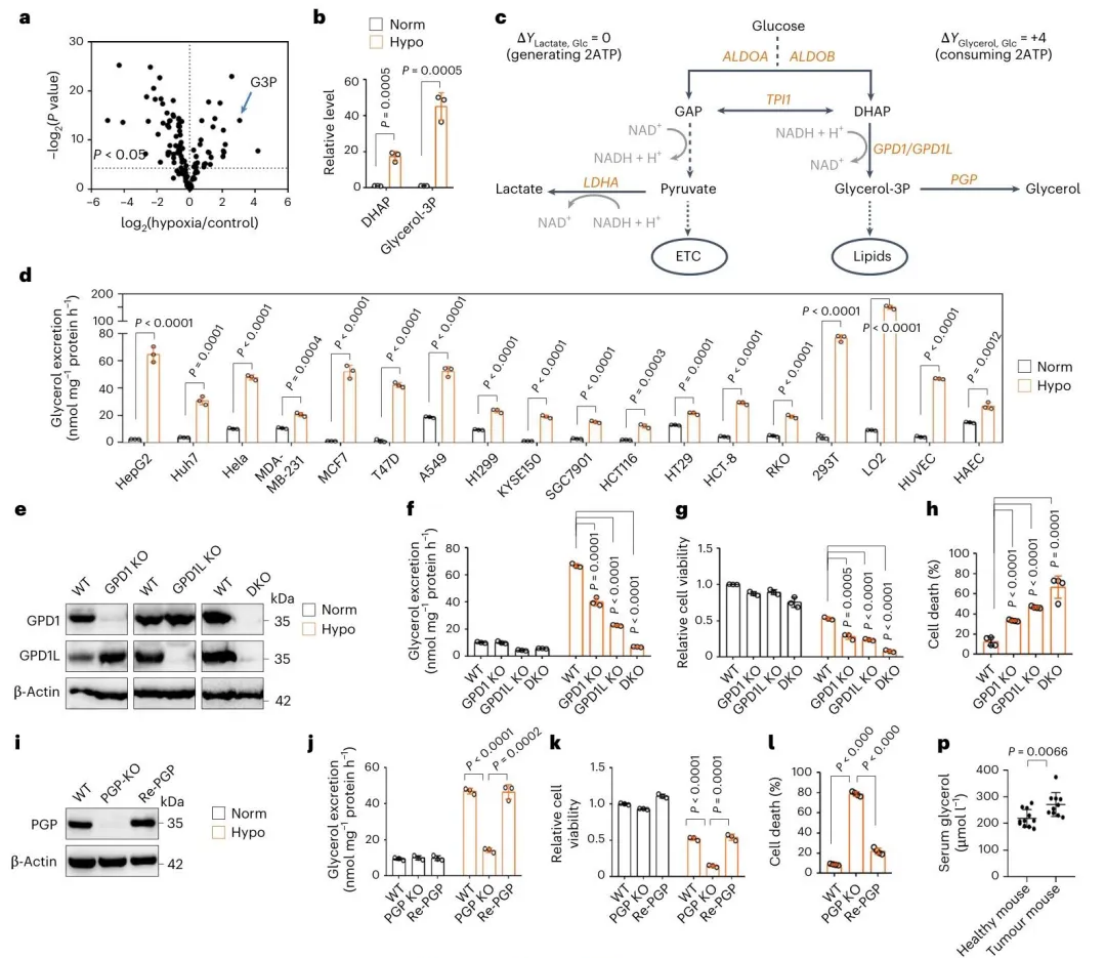 代谢重编程是癌症的标志性特征,缺氧条件下癌细胞通过重塑电子传递链(ETC)、糖酵解等通路维持氧化还原平衡与能量供给已成为共识。此前研究已建立"电子传递潜力"理论及电子平衡模型,但葡萄糖衍生的排泄性甘油在缺氧代谢中的功能尚未明确: