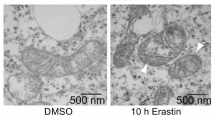 (1)细胞超微形态观察:通过透射电镜直接观察,铁死亡细胞典型特征为线粒体体积缩小、线粒体膜密度增高;