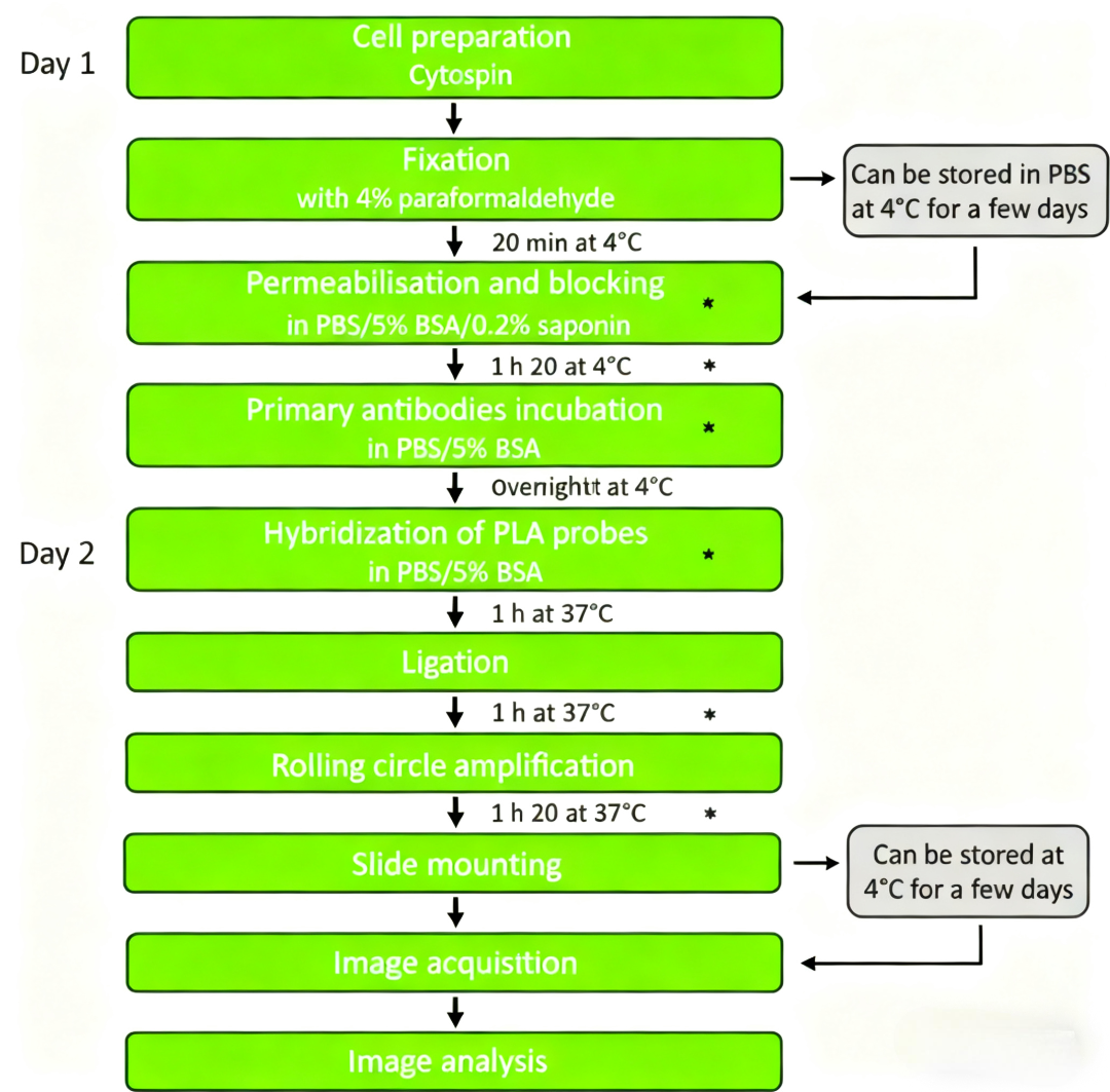 以研究细胞内蛋白-蛋白互作为例,PLA的标准操作流程包含以下关键步骤: