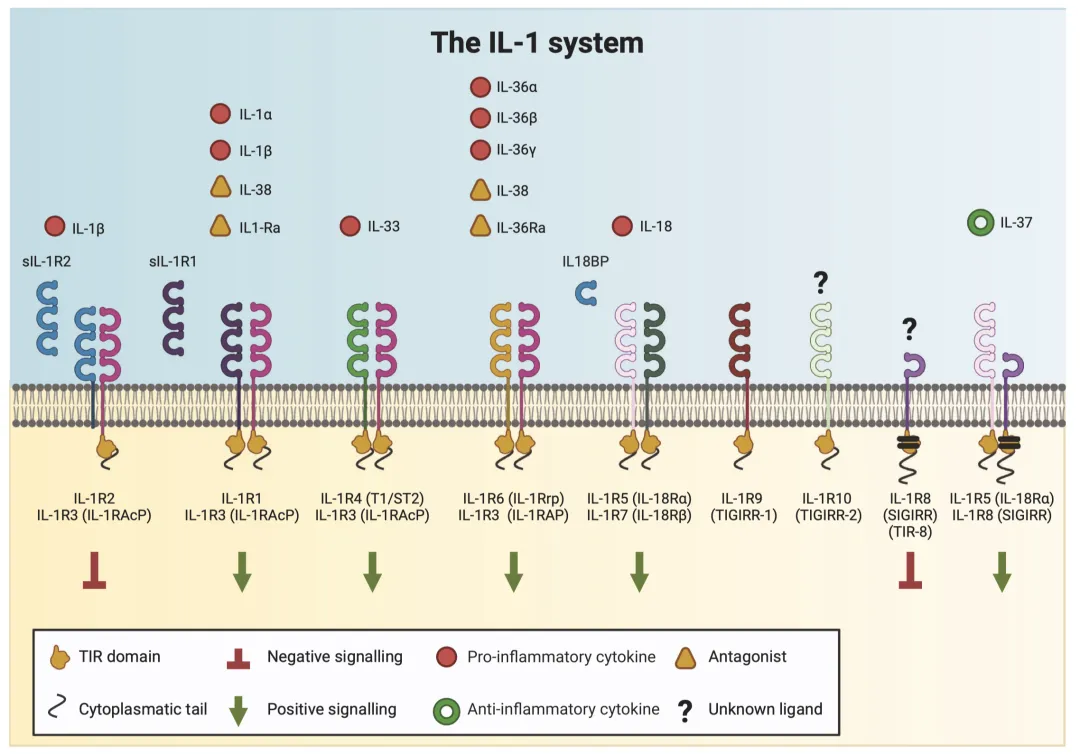 IL-1系统是一个由配体、受体及负调控分子构成的复杂网络,各成员通过结构同源性与功能关联性形成协同调控体系。