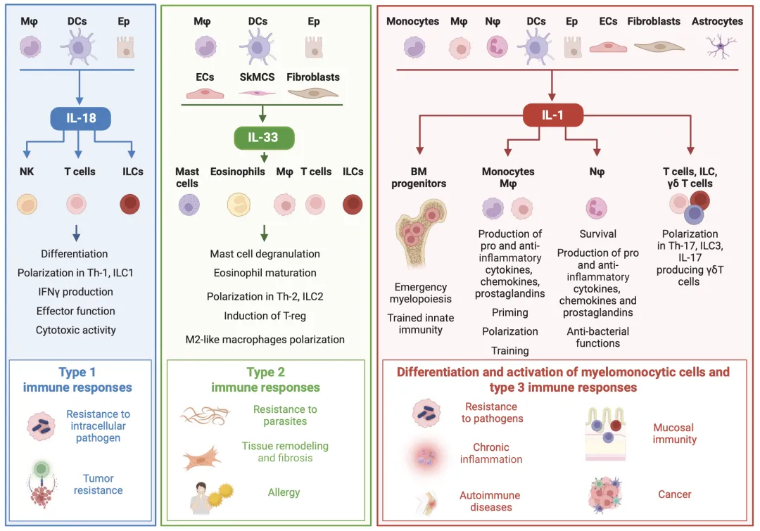 IL-1家族成员通过调控髓系细胞功能、训练性先天免疫、淋巴细胞极化等过程,在先天免疫与适应性免疫的协同作用中扮演关键角色。