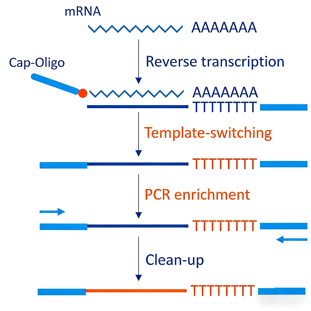 SMART技术通过设计特殊引物系统与MMLV逆转录酶的独特特性相结合,实现高效的全长cDNA扩增。