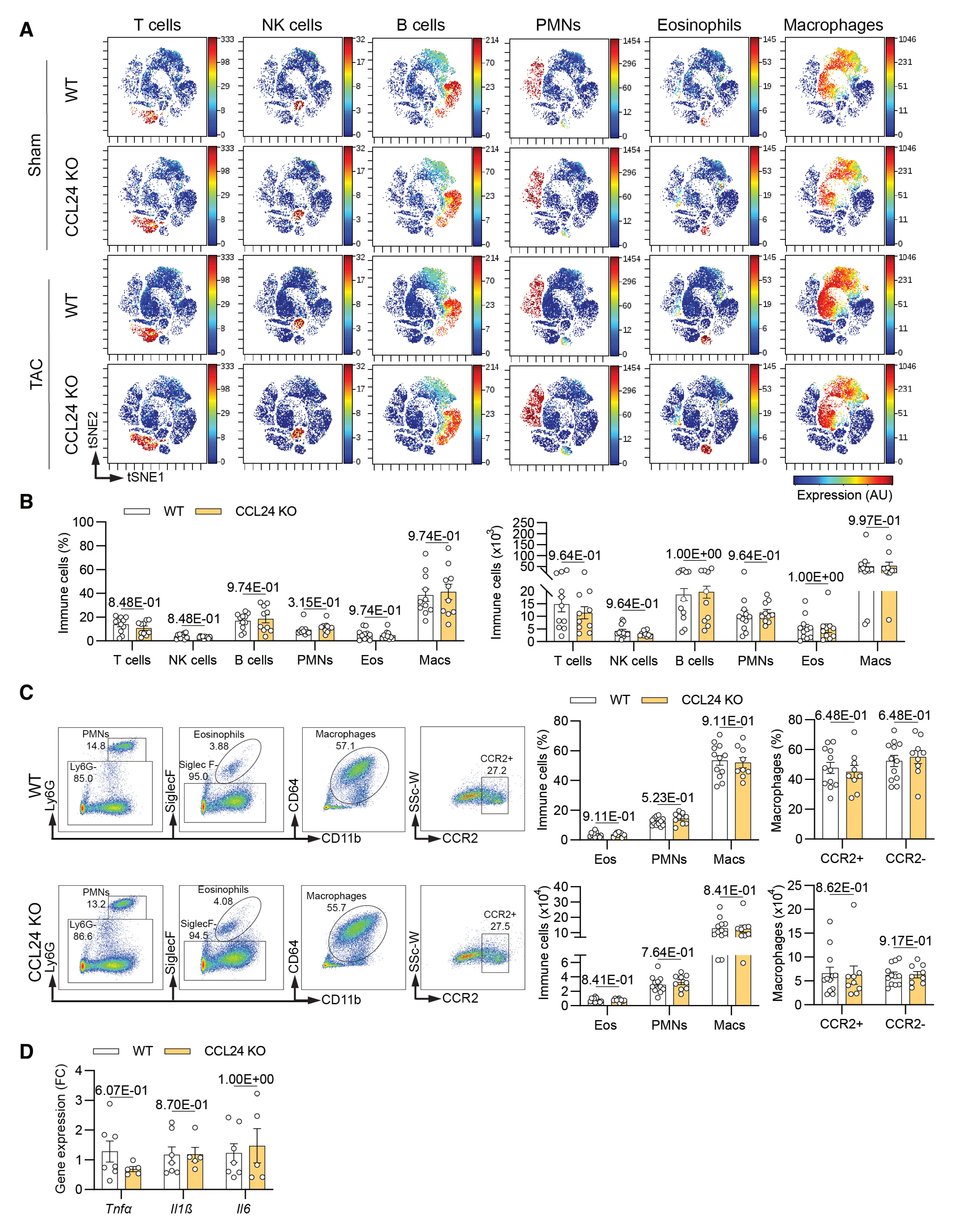 结论 4:CCL24 介导的纤维化重塑独立于心脏炎症反应