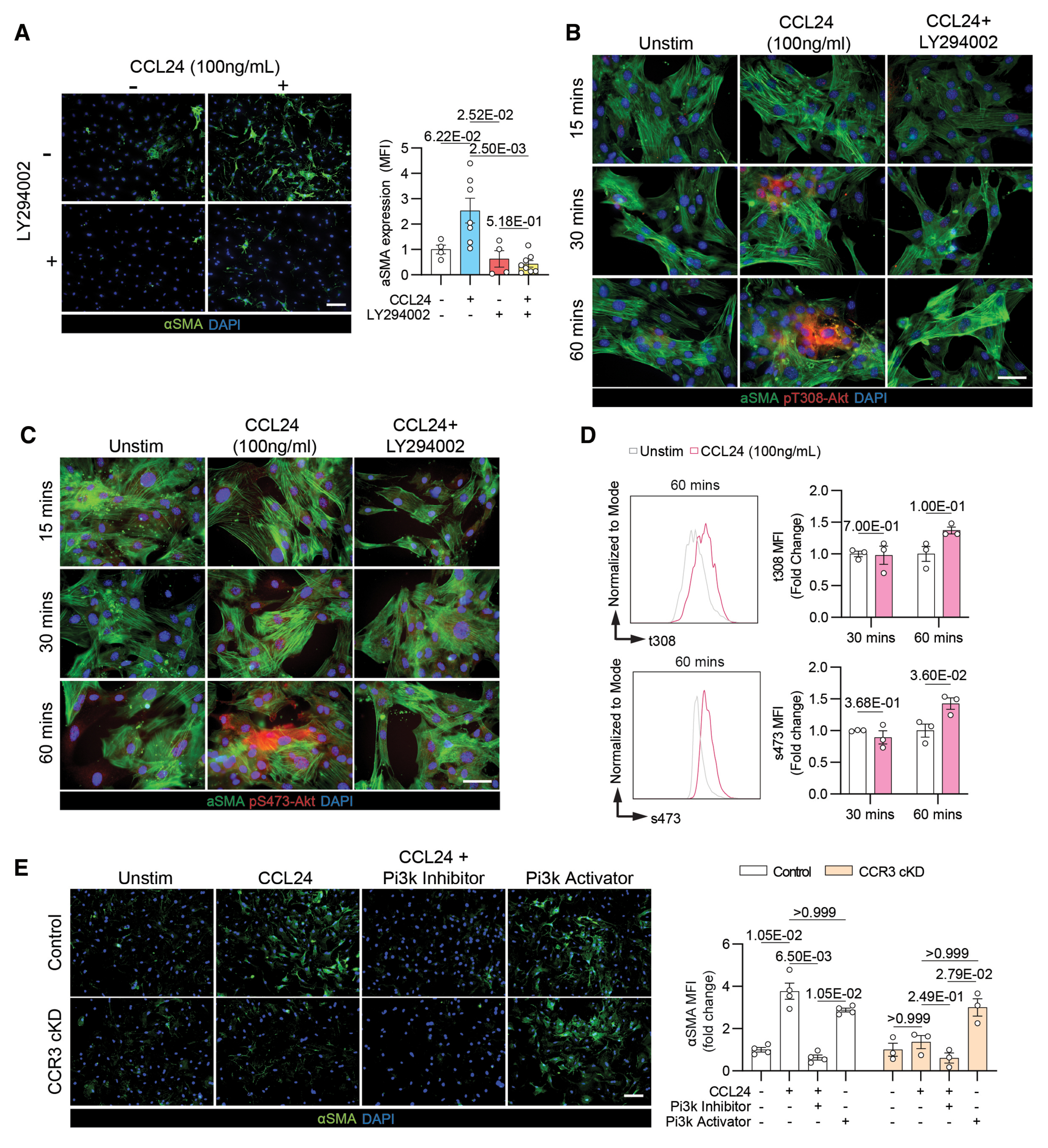 结论 7:CCL24-CCR3 轴通过激活 PI3K/Akt 信号通路驱动心脏纤维化