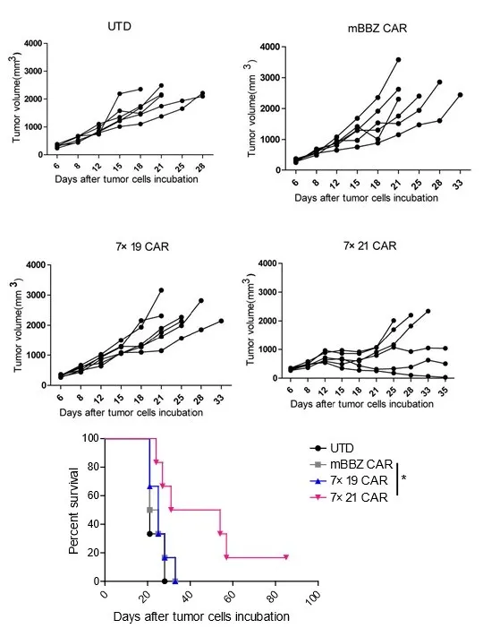 四、IL-7与CCL21共表达CAR-T细胞在实体瘤模型中的疗效优势