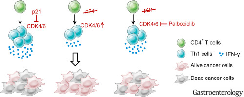T细胞在抗结直肠癌(CRC)免疫应答中发挥关键作用,但其效应功能常受T细胞耗竭的限制。目前,调控T细胞耗竭的内在分子机制尚未完全阐明。本研究旨在探究细胞周期蛋白依赖性激酶抑制剂Cdkn1a/p21在CD4⁺ T细胞中的功能,及其对抗肿瘤免疫应答的调节作用。Gastroenterology(IF:29.4)发表的研究揭示了细胞周期调控因子p21在维持CD4⁺ T细胞功能中的关键作用。
