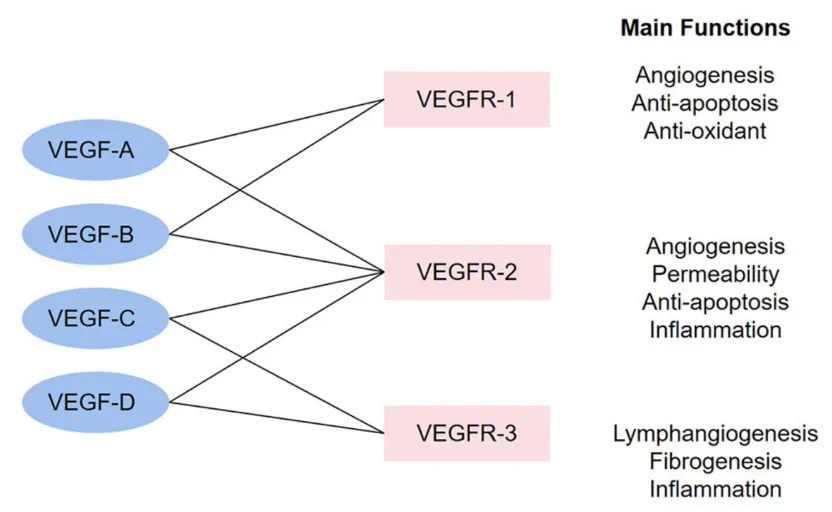 3. 功能特异性基础:源于与不同VEGFR亚型的结合亲和力差异及下游信号激活效率区别。