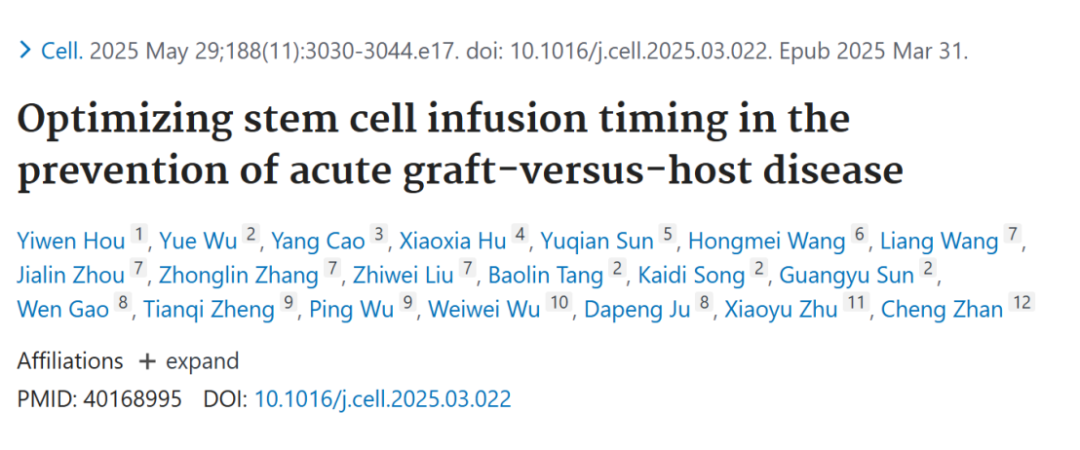 这项成果于 2025 年 5 月荣登顶刊《Cell》,为临床制定更安全的干细胞移植方案提供了全新依据,让 aGVHD 的 “生死考验” 有了更精准的应对策略。