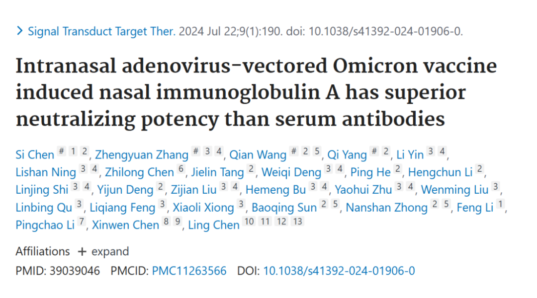 这项成果于2024年7月登刊《Signal Transduct Target Ther》,为鼻喷疫苗的免疫机制研究与优化提供了核心数据,也为呼吸道病毒的防护策略升级指明了新方向。