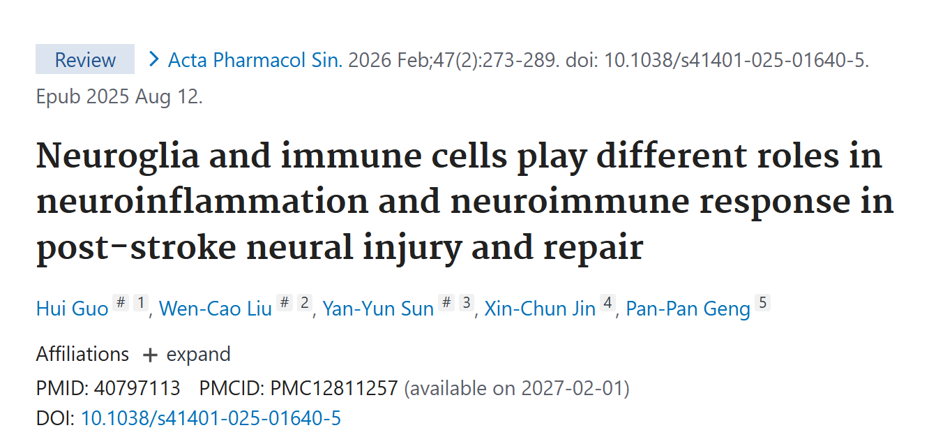 缺血性卒中(IS)作为脑动脉阻塞引发的脑组织缺血性梗死,其病理过程涉及神经胶质细胞与免疫细胞介导的复杂神经炎症和免疫反应。这些细胞在卒中后不同阶段呈现出损伤与修复的双重作用,是决定脑卒中预后的关键因素。本文基于首都医科大学金新春教授团队在《中国药理学报》发表的最新综述,系统阐述缺血性卒中急性期、亚急性期和慢性期神经胶质细胞与免疫细胞的功能动态变化,解析调控神经修复的关键信号通路,并总结中药及天然化合物、干细胞、生物材料等潜在治疗策略,为缺血性脑卒中的基础研究与临床转化提供新视角。