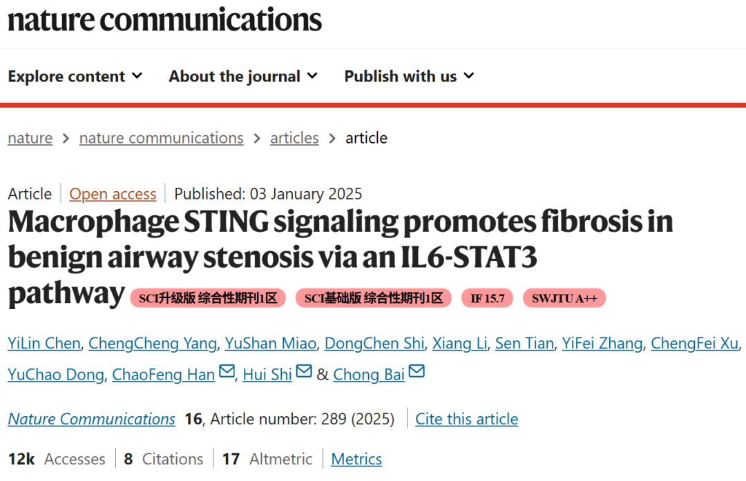 研究案例:上皮损伤释放的dsDNA可通过激活巨噬细胞内cGAS-STING信号轴,上调IL-6并激活STAT3,从而促进气道狭窄部位的纤维化。