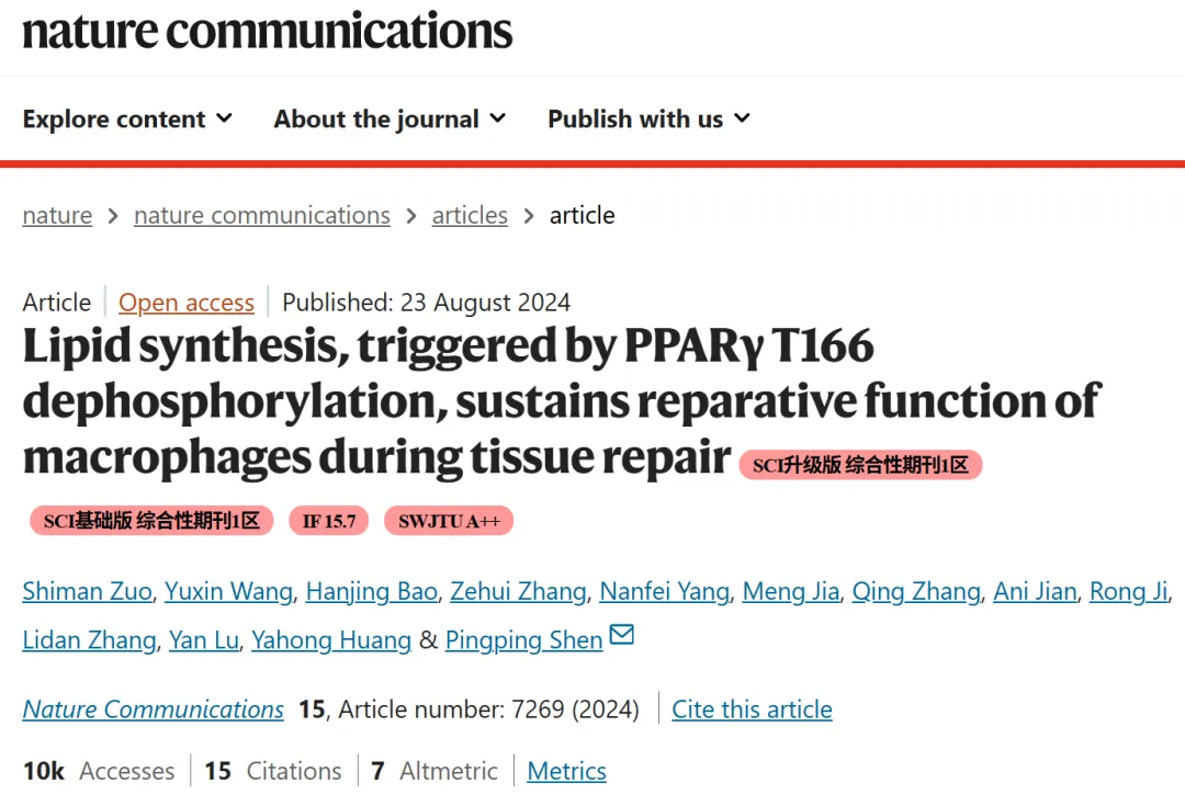 研究案例:PPARγ第166位苏氨酸去磷酸化可增强其转录活性,促进脂质合成,进而通过STAT3信号上调生长因子表达,增强巨噬细胞的修复功能。