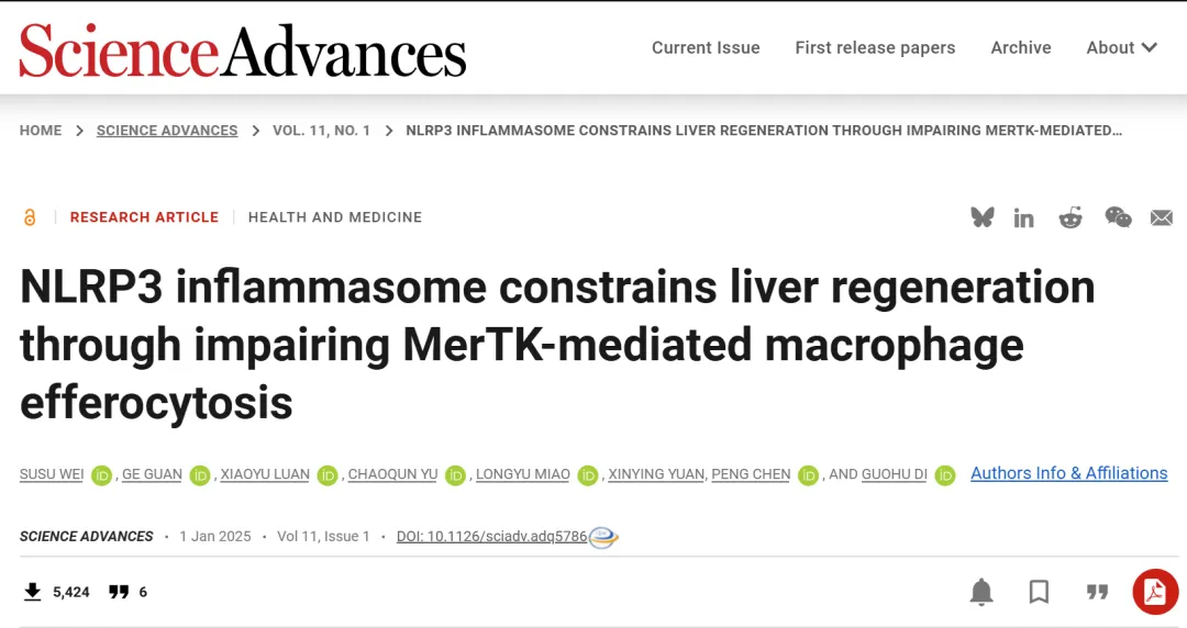 研究案例:NLRP3炎症小体激活可抑制MerTK介导的胞葬作用,从而阻碍肝脏再生;抑制NLRP3则能促进胞葬及修复性巨噬细胞表型转换。