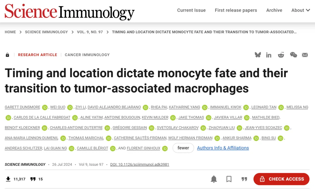 研究案例:单核细胞在肿瘤微环境中经历中间态过渡,最终分化为具有不同定位与功能的终末肿瘤相关巨噬细胞亚群,影响胰腺癌进展与预后。
