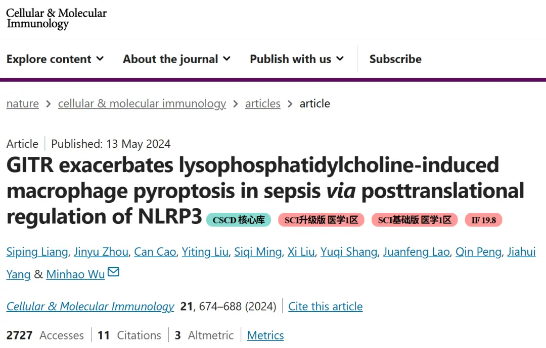 研究案例:脓毒症中,脂酰胆碱可通过上调巨噬细胞GITR表达,竞争性招募E3泛素连接酶MARCH7并降解去乙酰化酶SIRT2,从而增加NLRP3乙酰化并促进其激活,加剧巨噬细胞焦亡及全身炎症损伤。