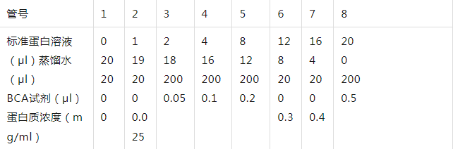 准确称取0.5克牛血清白蛋白(BSA),以蒸馏水溶解,并转移至100毫升容量瓶中定容,配制成浓度为5毫克/毫升的储备液。使用前,用蒸馏水或相应缓冲液将此储备液稀释10倍,获得浓度为0.5毫克/毫升的标准工作液,用于标准曲线的绘制。