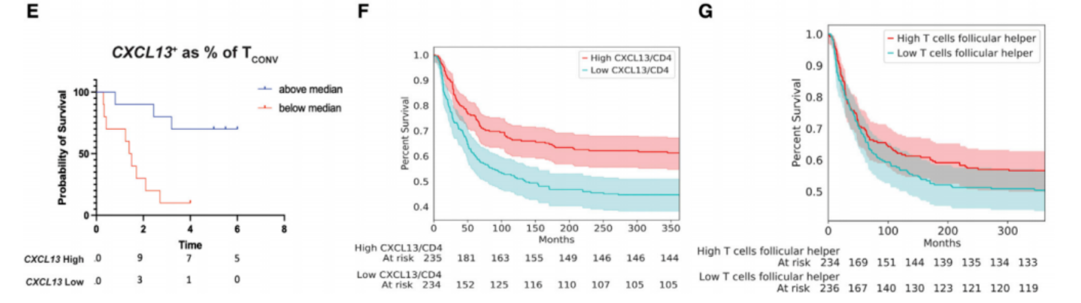 (四)CXCL13+CD4+T细胞比例可预测黑色素瘤患者生存率