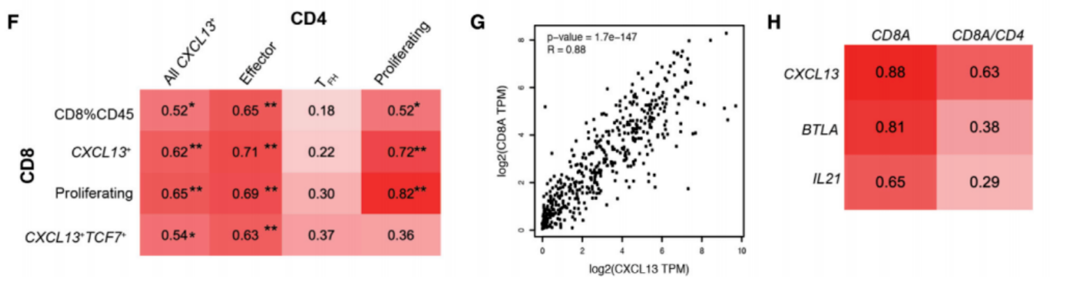 (五)肿瘤微环境CD8+T细胞与CXCL13+CD4+T细胞表型具有相似性