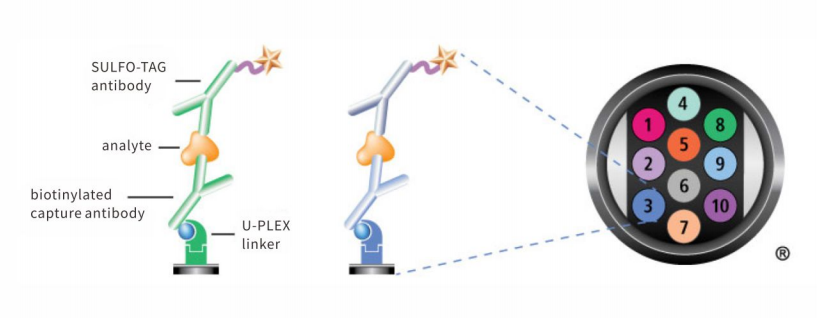 MSD技术基于定制的多孔板,其底部集成了碳电极,并印有多个独立的点状工作电极。每个斑点预包被了特异的捕获抗体,形成了类似于传统ELISA的“固相”模式,但其面积微小,实现了多因子并行检测。与Luminex的悬浮系统不同,MSD属于平面阵列技术。