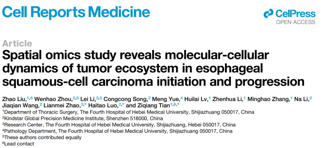 近期,河北医科大学第四医院科研团队于国际权威期刊《Cell Reports Medicine》发表了一项突破性研究成果。该团队借助Nanostring GeoMx空间组学(Digital Spatial Profiling,简称DSP)技术(点击),对食管鳞状细胞癌(ESCC)组织样本展开空间转录组分析,成功绘制出涵盖从正常上皮、癌前病变,到浸润性癌以及转移灶的ESCC全周期空间分子图谱。