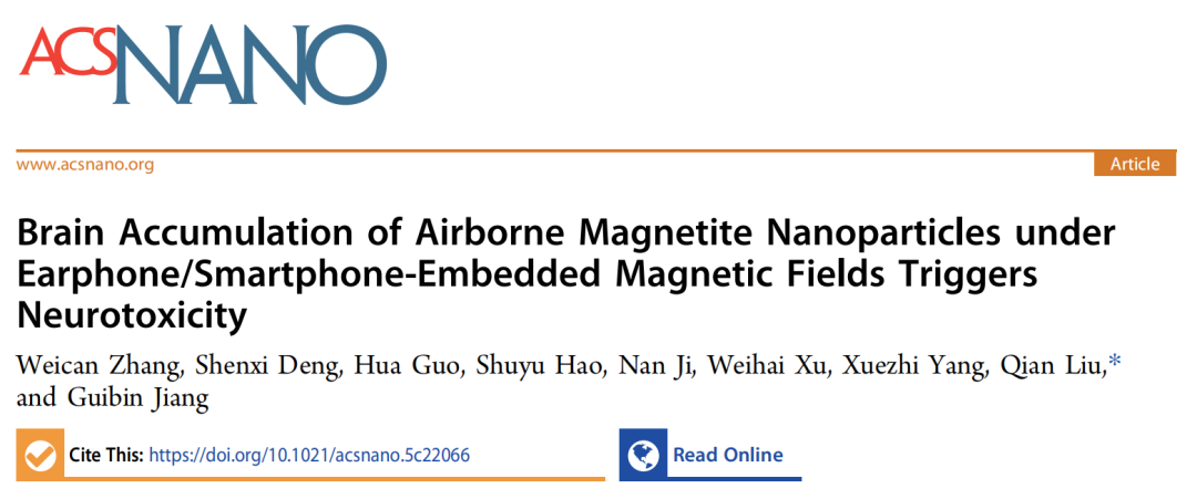 近日,中国科学院生态环境研究中心科研团队,在 ACS Nano 期刊上发表了一篇题为“Brain Accumulation of Airborne Magnetite Nanoparticles under Earphone/Smartphone-Embedded Magnetic Fields Triggers Neurotoxicity”的研究论文,为我们揭开了其中的奥秘。