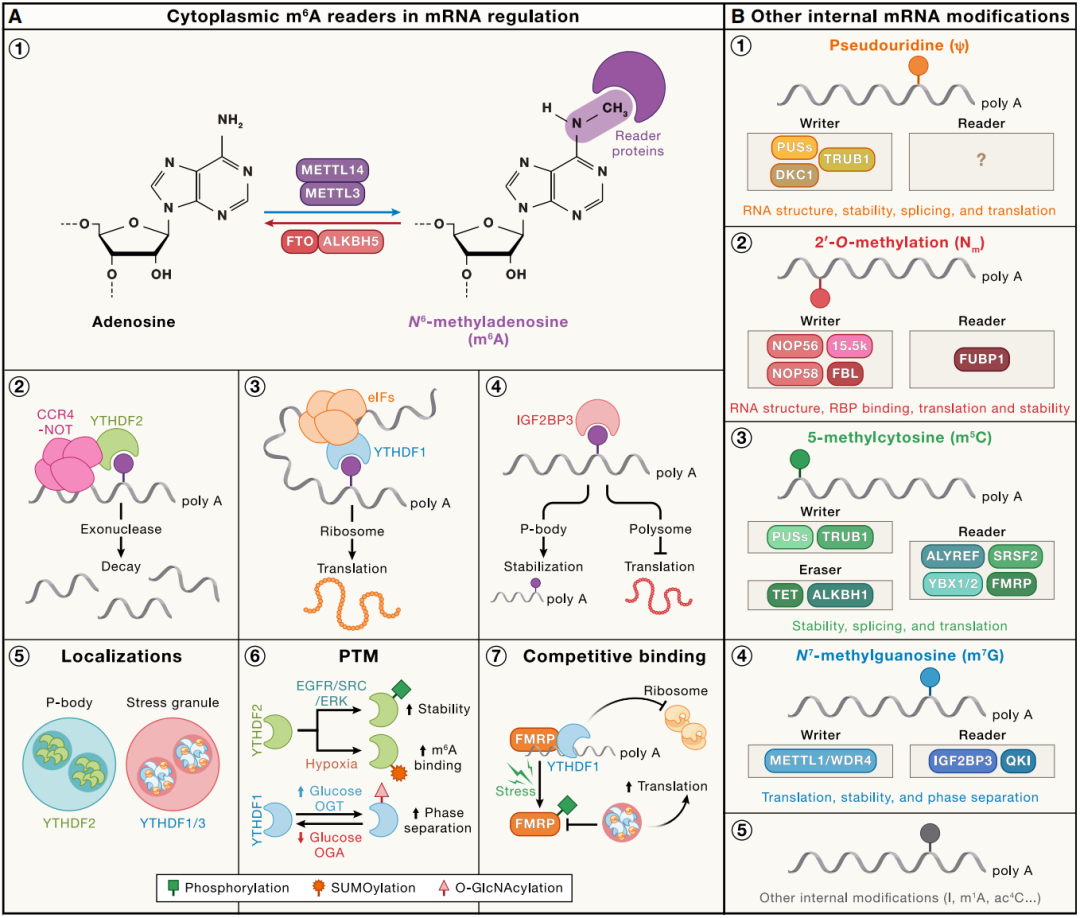 m6A 及其他 mRNA 内部修饰的转录后调控机制与效应因子