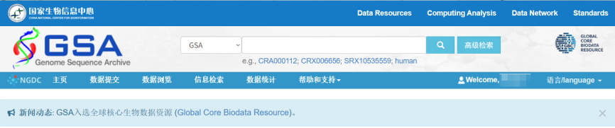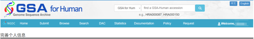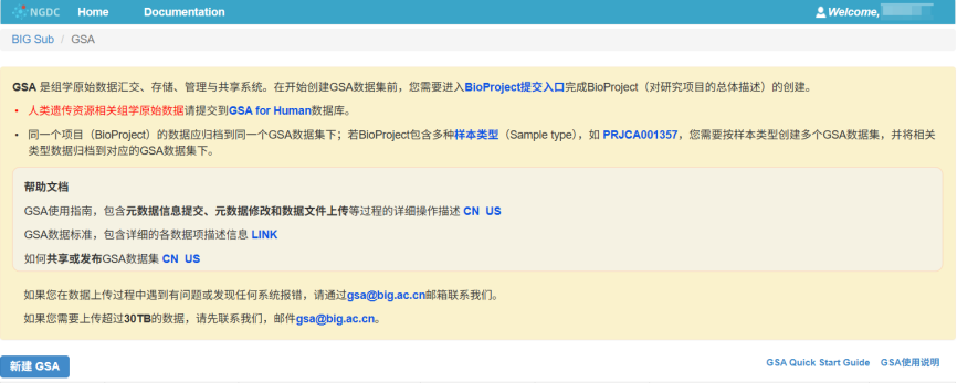 (1)在系统首页(https://ngdc.cncb.ac.cn/gsub/)点击 GSA/GSA-Human -> 新建GSA